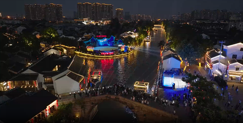 “今夜梁宵”江南古运河行浸式光影夜游正式启航,全长8.5公里,41台巴可UDX系列投影机打造9大光影景观,描绘古今辉映的绚美画卷,成为无锡“夜经济”的一张亮丽名片;